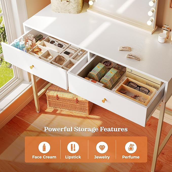 • [Radiant Mornings Await]: Nestle this chic vanity desk in your bedroom and turn makeup time into a daily delight! With all your beauty essentials within arm's reach, it's your secret to a seamless morning routine
