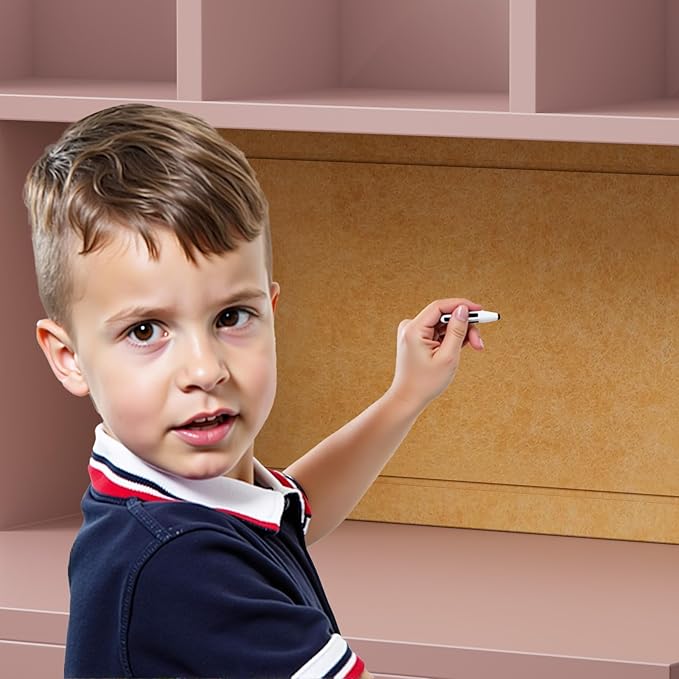 - [CUBBIES CORKBOARD AND MORE]: This kid's desk and chair set comes with a clipboard, 4 cabinet, with 2 Drawers & 4 Open Shelves for Easy Access Storage, The desk offers you ample space to keep books, documents, and other things, suitable for adults and children.-Jcp9pn