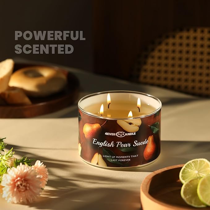 - 【English Pear Suede Fragrance for Relaxation】Scented candles capture the essence of English Pear Suede with its crisp, fruity top notes, a heart of ripe pear, and a smooth, luxurious base of suede and amber. Perfect for cozy spaces like living rooms, bedrooms, or bathrooms to unwind and relax.