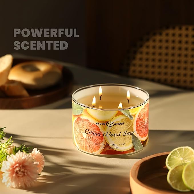 Soy Wax Blend Candle for Home, 4-Wick Candles in Citrus Wood Sage, Aromatherapy Candles Gift for Parties, Relaxing, Over 50 Hours of Burn Time, 18oz