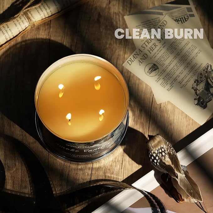 Smoke Vanilla Scented Candles, 18oz Soy Candles Non Toxic 4-Wick Large Candle Jars, Over 50 Hours of Burning Time, Ideal for Gifting, Events, Home Decor