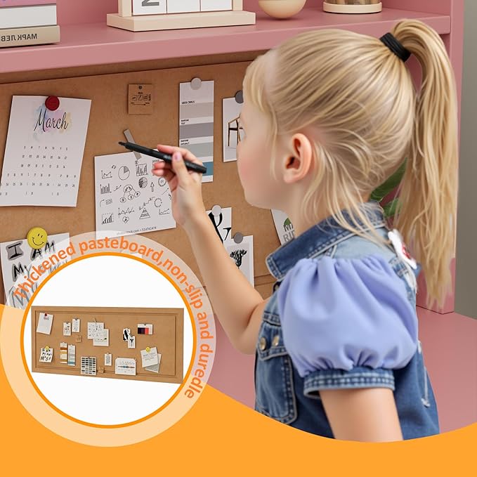 - 【Large space table and chair set】: The kids study table set comes with a multi-functional storage cabinet, with Bulletin Board,which can place books, stationery, toys and other items, providing ample space for children's study. The display board at the top can also be used to place green plants, alarm clocks, etc.