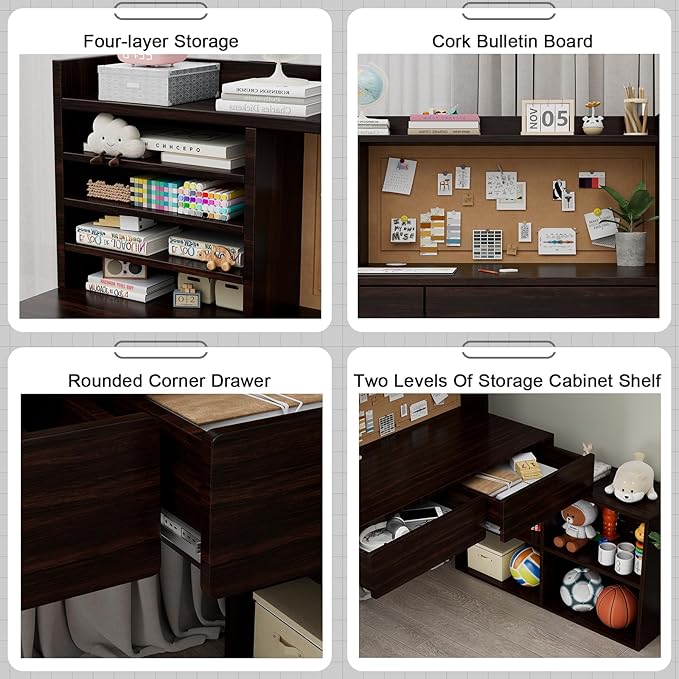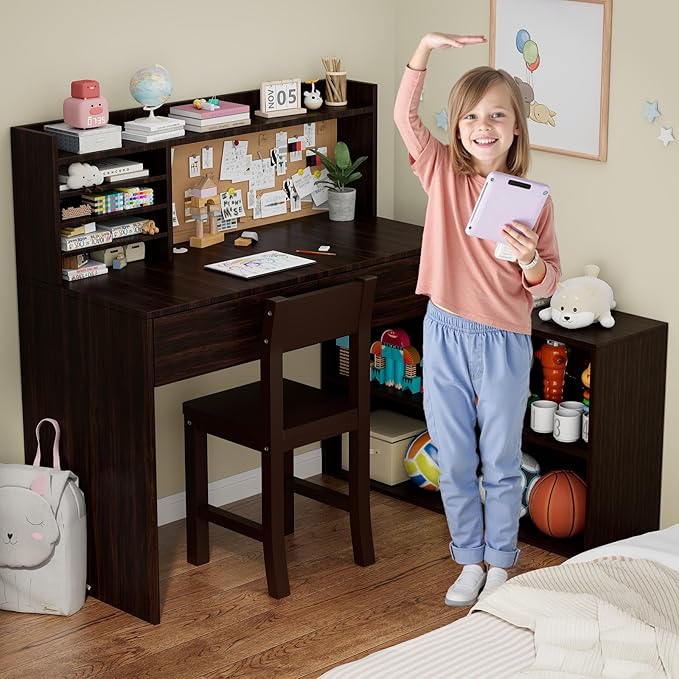 Wooden Kids Desk and Chair Set, 2 Drawers and Remove Storage 4 Cabinets, Children Study Desk with Hutch and Shelves, Boys & Girls Study Desks for Kids Bedroom (Espresso)-7Cp1CF