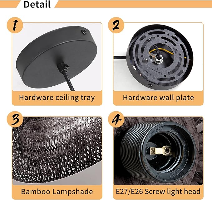 - 【Easy Installation & Versatile Use】 This hardwired pendant light (no plug included) operates on AC 85-265V, 50-60HZ, with built-in short circuit and current protection for enhanced safety. The hand-woven bamboo design blends modern and vintage styles, creating a stunning focal point. Perfect for kitchen islands, dining rooms, living rooms, bedrooms, hallways, cafés, bars, farmhouses, Boho-themed parties, and even wedding décor, it brings a touch of elegance and charm to any space.