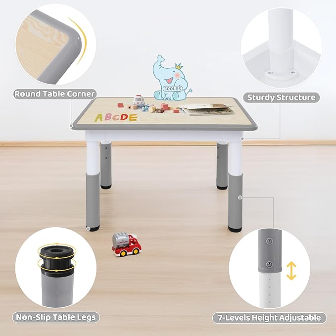 - Specially Designed for Children: This table for kids 3-8 is made of harmless, odorless and sturdy plastic, which can withstand a weight of 300 pounds and can be used for a long time without damage. All corners of the toddler play table are designed with rounded corners to prevent children from scratching and bumping during use. The bottom of the table legs has anti slip design, which can stabilize in any environment and prevent slipping and hitting children.