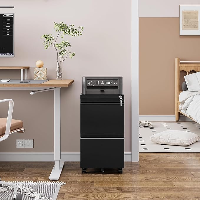 - 【Abundant Storage Space】:This small file cabinet features 2 spacious drawers equipped with full-extension glides, allowing the drawers to fully open. rolling file cabinet can accommodate hanging file folders in Letter, Legal, and A4 sizes.