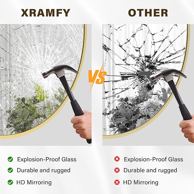 - Aluminum Alloy Frame: Our round mirrors are made from high-quality aluminum alloy, showing great craftsmanship and design. This durable material is water and rust-resistant, ensuring long-lasting use. Each vanity mirror is carefully tested for quality to make sure it stays in perfect condition, no matter the environment. Whether in the bathroom, bedroom, or living room, it will stand out as a stylish decoration. The lightweight aluminum alloy frame makes it easy to install and move