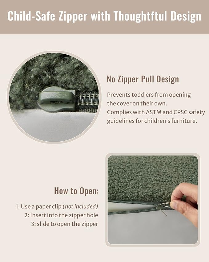- High Density Foam and Washable Cover: High-density memory foam provides sturdy support for the kids sofa. The cover is made of soft, breathable fabric that is skin-friendly and comfortable, easy to remove and machine washable