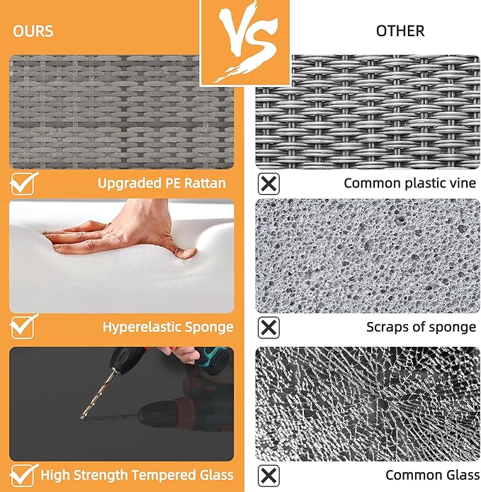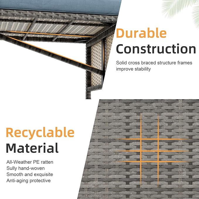 - Sturdy&Long-lasting Patio Furniture: Solid metal structure make it super safe to sit in the sofa set. Added strong steel for the frame enhance the sturdiness and allow the sofa to support heavy people about 400lbs. PE Wicker rattan is strong enough to survive inclement weather and guarantee the Patio Furniture Sets has a long service life.