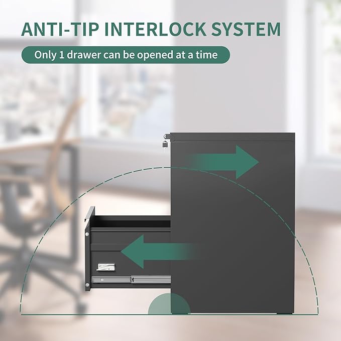 - 【Stability & Security】Our heavy-duty 4-drawer metal file cabinet is engineered for ultimate stability and safety with its one-drawer-at-a-time mechanism.Unlike flimsy designs that allow multiple drawers to open,creating a dangerous imbalance.Our file cabinet locks adjacent drawers when one is extended, ensuring perfect weight distribution and preventing tipping.