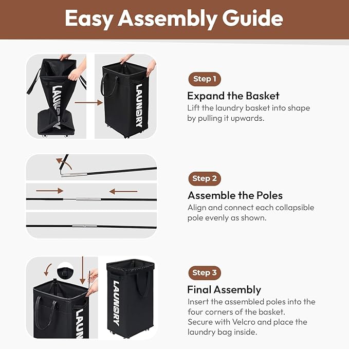 - 🪜 Upright Support with 4 Standing Rods – Never Collapses ]: Our design includes 4 firm support rods that ensure the basket stays upright, even when empty. Say goodbye to floppy hampers—the sturdy structure keeps it looking neat at all times.