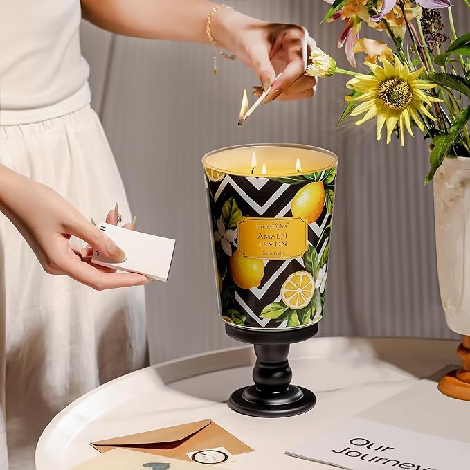 - 【Amalfi Lemon Aromatic Experience】This fresh citrus scented candle captures the sun-kissed zest of Amalfi lemons, balanced with subtle herbal undertones for an uplifting yet refined fragrance. Perfect for energizing workspaces, refreshing kitchens, or brightening up self-care moments.