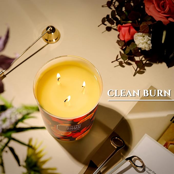 - 【Even & Clean Burn】Infused with premium fragrance oils, this 34oz candle delivers a rich, long-lasting scent experience. The natural cotton wick ensures a soothing 80-130 hour burn time with a consistent aroma throw and minimal soot.