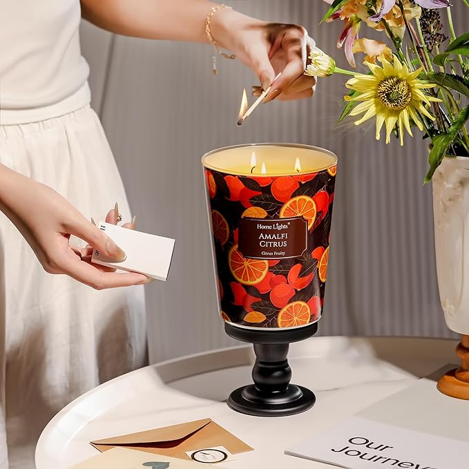 - 【Amalfi Citrus Fragrance for Relaxation】Scented candles capture the essence of Amalfi Citrus with its bright, zesty top notes, a heart of juicy citrus, and a fresh, uplifting base of bergamot and musk. Perfect for cozy spaces like living rooms, bedrooms, or bathrooms to unwind and relax.