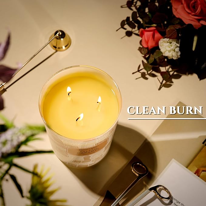 - 【Eco-Friendly and Clean-Burning】Soy wax blend candle is designed to burn cleanly and efficiently. The 3-wick construction minimizes soot and ensures an even melt pool, allowing you to enjoy a cleaner, healthier environment without compromising on performance or style.