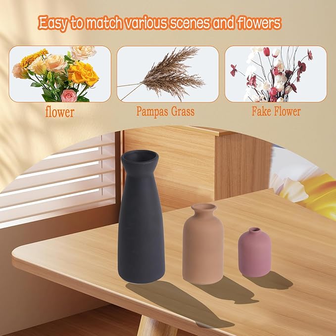 - Stylish Design: This vase set with stylish shapes and multi-color perfectly fit all Decor styles for Home, Office, Shops, Restaurants and Cafes: Rustic, Modern Farmhouse, Classic Charm, Country, Simplest, etc.