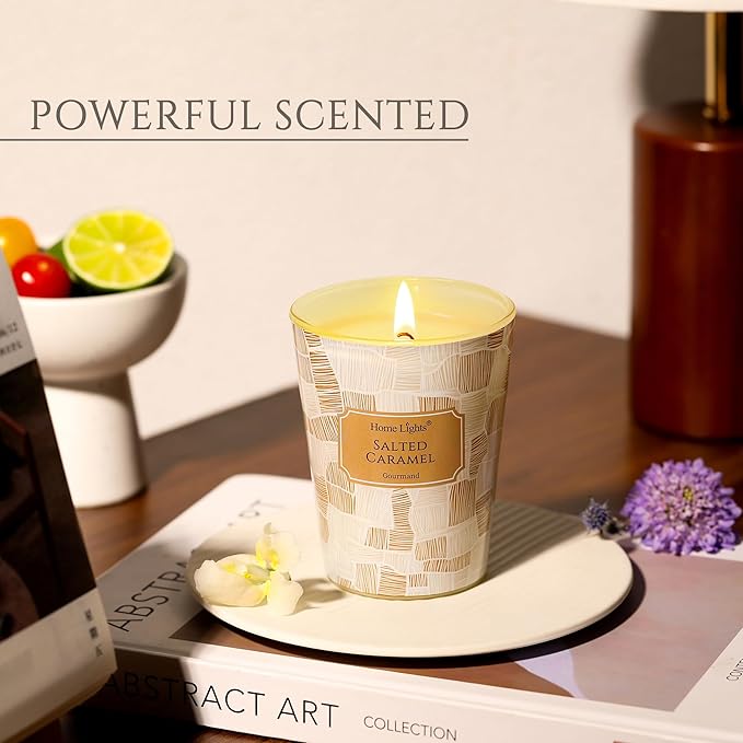 - 【Salted Caramel Fragrance for Relaxation】Scented candles capture the essence of Salted Caramel with its rich, buttery top notes, a heart of sweet caramel, and a warm, savory base of sea salt. Perfect for cozy spaces like living rooms, bedrooms, or bathrooms to unwind and relax.