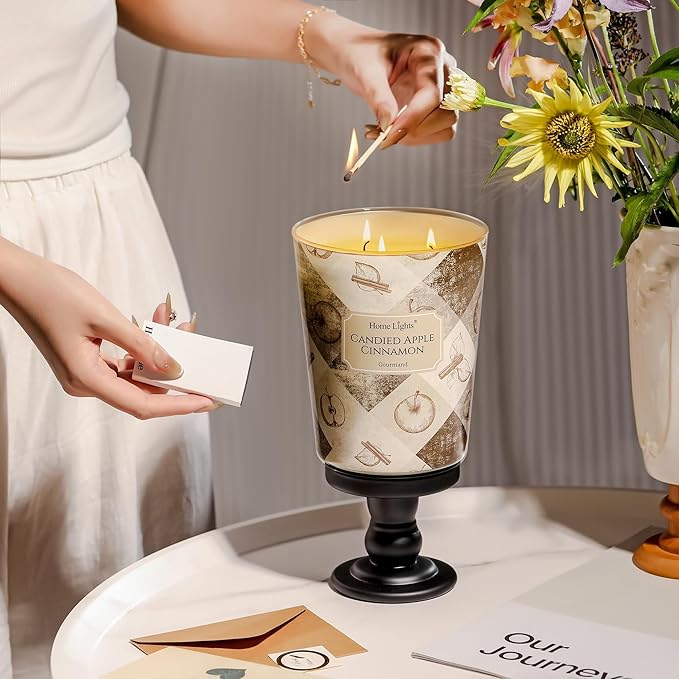 HomeLights 3-Wick Candles for Home Scented - 34oz Soy Wax Blend Candle Long-Lasting Fragrance, Rustic Modern Home Decor and Housewarming Gifts, Candied Apple Cinnamon