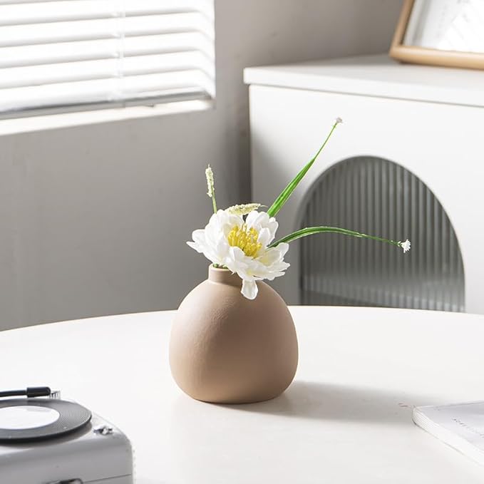- Unique Modern Vases: Our flower vase set has an elegant sculptural and modern look, and can blend well with any décor styles. The figure of round vases is frosted and delicate, making a gritty sand texture, giving them a solid, expensive feel, and bringing elegance and romance to your home.
