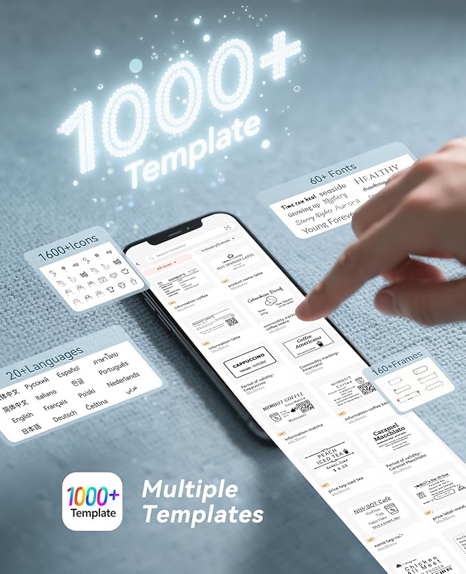 - Powerful Software: Built-in 500+ industry templates, fonts, icons, QR codes, barcode labels, tables, and typesetting directly, and editing is very easy. The software supports batch printing of the same/different commodity labels, very efficient