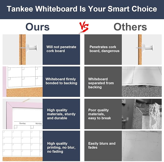 - QUALITY CALENDAR WHITEBOARD - This dry erase board is made of high quality materials, the wooden frame is sturdy, easy to write and erase, the lines won't fade, and is designed for long-term use.