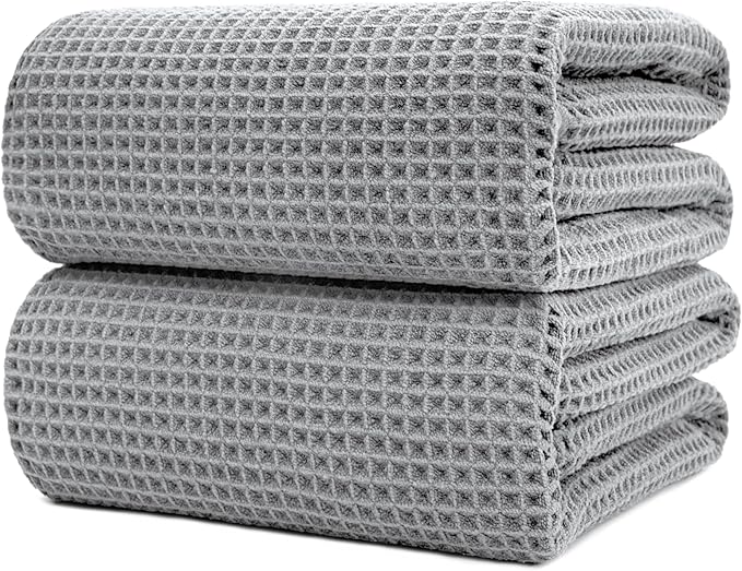 - Microfiber thoroughly dries faster and gentler than traditional fibers; waffle weave feels smoother on your skin and is less likely to collect lint or debris