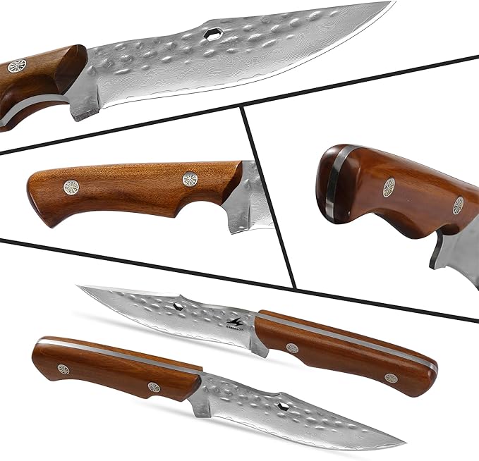 - Durable leather sheath for safe storage: Equipped with a durable sheath, the sheath can protect the blade, easy to carry and safe storage, suitable for cutting, peeling, and chopping meat for food.