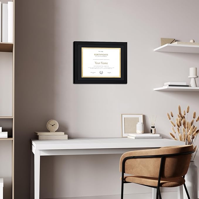 - Easy to use: These 8 1/2 x 11 frames with mat typically come with user-friendly features like easy-open tabs at the back for quick loading and unloading of certificates or photos. Spring type action to remove the backing, can be hung horizontally or vertically. They also have ready-to-use hooks and kickstand for hassle-free wall hanging or table top display