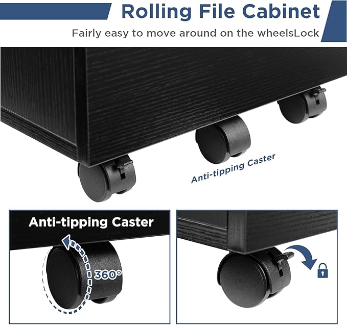- Add more Mobility - This file cabinet features 5 swivel wheels, including 2 front wheels with brake function and center wheel to prevent tipping, allowing it to stay stable or move freely and safely according to your needs