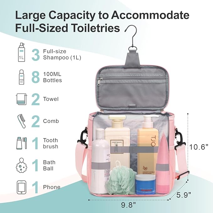 - Quick Drying, Freshness Ensured: Crafted with a quick-drying ventilated mesh and an innovative bottom grid design, this shower caddy dorm keeps your toiletries fresh and dry, enhancing hygiene and preventing wear from prolonged dampness