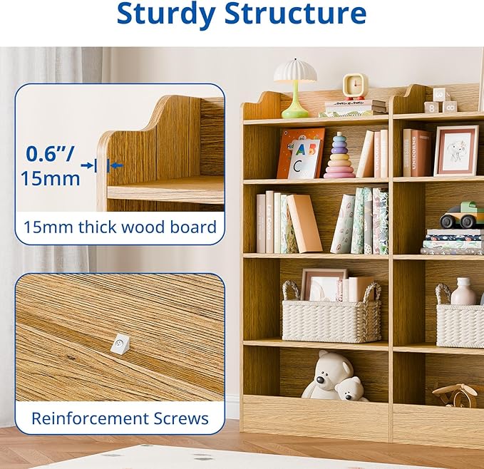 - Double Anti-Tip Devices: For creating a safe family space, this toy organizer bookcase is designed with double anti-tip devices; therefore, this bookshelf is suitable for kids and pets and you don't have to worry about safety anymore