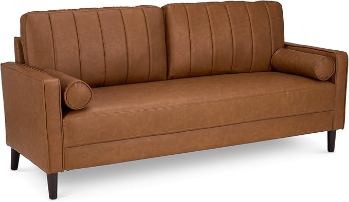 Bush Home 77-inch Sofa, Living Room Furniture, Max Collection, Buffed Camel Vegan Leather