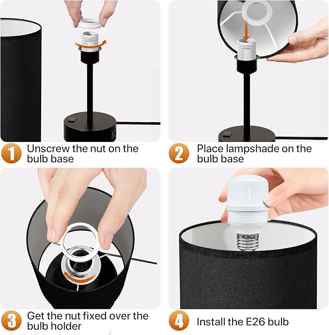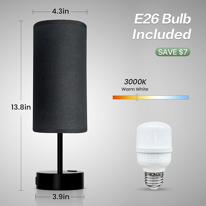 - ❤️【$7 E26 Warm Light Bulb Included】―To save you from troubles in finding right bulb to match, we particularly pair with an energy-saving E26 light bulb worthy of $7. Unlike other dazzling night stand light lamp, our bedside lamp with usb port provides no-flickering lights, protecting you and your family's eyes from eye strain, or eyesight damages.