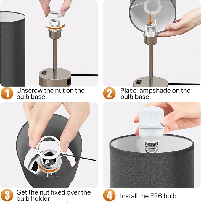 - ❤️【$7 E26 Warm Light Bulb Included】―To save you from troubles in finding right bulb to match, we particularly pair with an energy-saving E26 light bulb worthy of $7. Unlike other dazzling night stand light lamp, our bedside lamp with usb port provides no-flickering lights, protecting you and your family's eyes from eye strain, or eyesight damages.