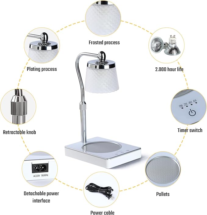 - DESIGNED FOR LIFE: The JcJazh candle lamp warmer is touch-type; a gentle tap turns it on. It works great even with wet hands or in the dark. The candle warmer adjustable height allows you to fit various sizes of candles in your home. The glass surface base of the wax burner makes cleaning much easier. The detachable power supply has a longer lifespan and is more convenient for organization.