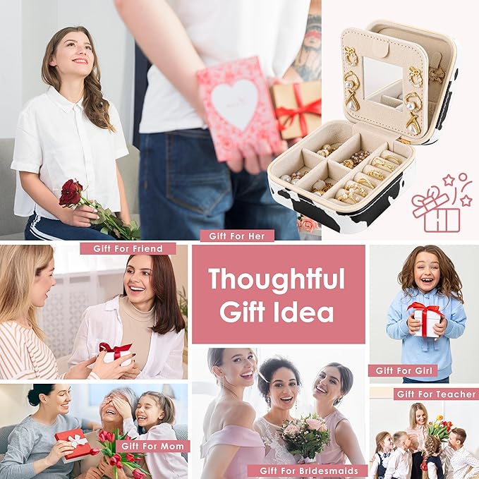 - [Perfect Gift Choice]: Gifting is about more than just the item—it's about the sentiment behind it. This chic small jewelry box makes an ideal present for moms, wife, girlfriends, best friends, daughters, and bridesmaids. Whether it's for a birthday, Valentine's Day, Mother's Day, graduation, Christmas, or even a bridesmaid proposal, this stylish and practical gift is sure to delight anyone who receives it!