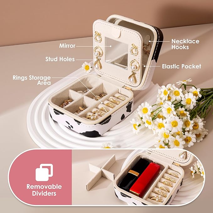 Cow Print Trave Jewelry Case, Animal Print Jewelry Box for Women Girl, Trinket Box Organizer, Adorable Birthday Gradution Gift