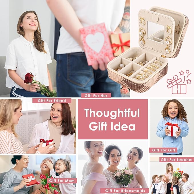 - [Perfect Gift Choice]: Gifting is about more than just the item—it's about the sentiment behind it. This chic small jewelry box makes an ideal present for moms, wife, girlfriends, best friends, daughters, and bridesmaids. Whether it's for a birthday, Valentine's Day, Mother's Day, graduation, Christmas, or even a bridesmaid proposal, this stylish and practical gift is sure to delight anyone who receives it!