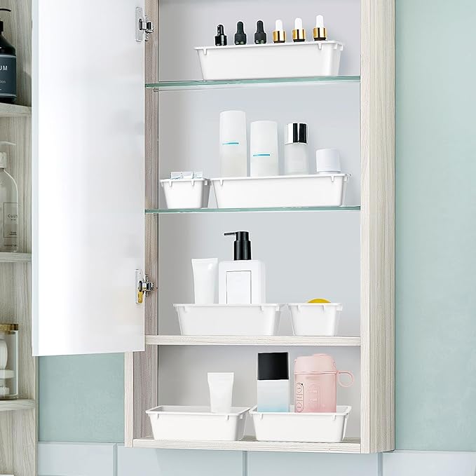 - 4 Combinations of Different Sizes: A set of cabinet organizer includes 25 storage bins of 4 different sizes. Includes: 9 x 6 x 1.8 inches (3pcs), 9 x 3x 1.8 inches(6pcs), 6 x 3 x 1.8 inches(8pcs), 3 x 3 x 1.8 inches(8pcs).