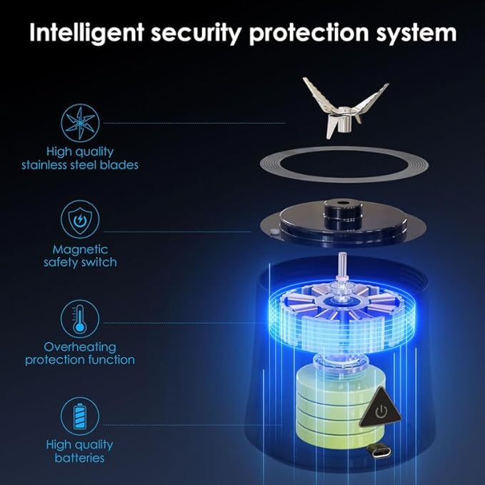- BPA-Free Safety & Smart Magnetic Lock: Crafted with military-grade BPA-free Tritan material, our 24oz blender cup ensures toxin-free drinks for kids, athletes, and health-focused users. The patented magnetic safety system halts operation instantly if the cup/base connection isn’t secure—no accidental spills or blade exposure. Dishwasher-safe components simplify cleanup, while leak-proof lids make it ideal for on-the-go hydration.