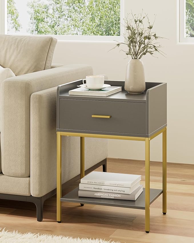 Nightstand,3-Tier Modern Night Stand,Bedside Table with Storage Drawer and Shelf,Small Side Table for Bedroom,Living Room,Gray