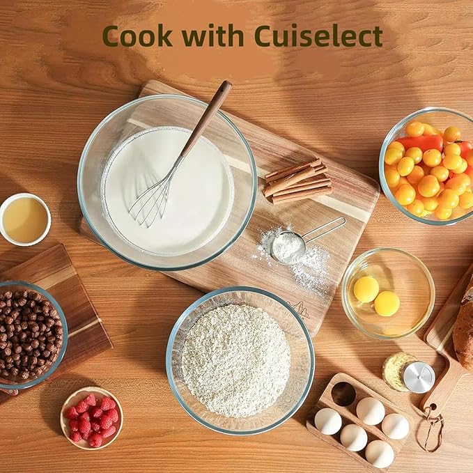 - 【HEALTHY MATERIAL】Our mixing bowls are made of 100% borosilicate glass. The thicker glass ensures sturdiness and is free from BPA, lead, and cadmium, making it completely safe for your family and children.