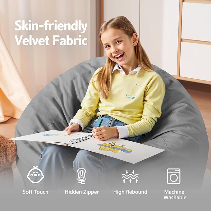 - Removable and Washable Cover: The cover of bean bag chair is removable and washable for further care. It is made of breathable premium dutch velvet with fine texture, soft and skin-friendly from touching. It is also anti-pilling and not easy to fade. You can easily put the beanbag cover into washer to clean it like new. Moreover its double stitched seams and hidden double-pull zipper ensures for super durability & strength.