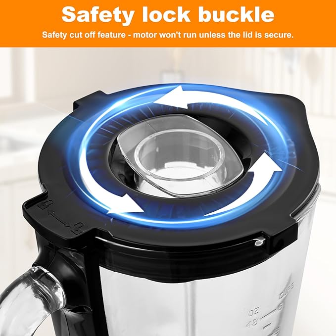 - SAFETY FEATURES: Built-in safety lock mechanism ensures the motor only operates when the lid is properly secured