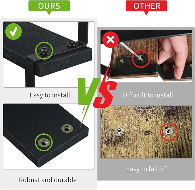 - Vintage Appearance: Black matte finish and wood texture that fits perfectly with the black matt paint iron frame . Simple and elegant black matte adds a vintage rustic feel to your home. This rack is suitable for many places in your home.