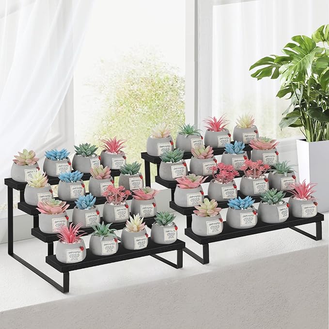 - Convenient Design: The stepped design makes efficient use of your counter space. This wooden display riser is a great idea for displaying toy figurines in cabinets, celebrating party desserts, and cosmetics on the dresser. The raised tiers help to create an eye-catching feature for your items.