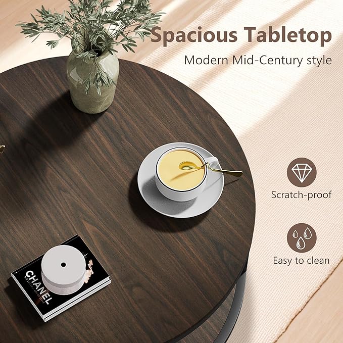 - [2-Tier Coffee Table] Spacious and Neat Living Room Storage: Our 36-inch round coffee table features a 2-tier design, providing ample space for all your Living Room essentials. Keep your daily supplies within reach and maintain a tidy and organized space.