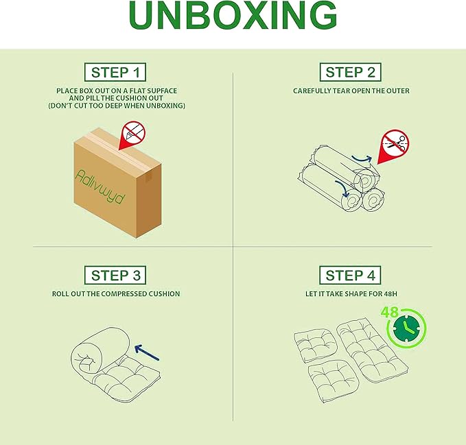 - Easy to clean- Cushion is easy to maintain. Simply spot clean them with a damp cloth or soapy water below 25 degrees, allow them to sun-dry