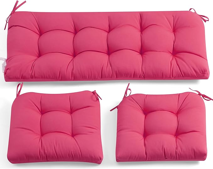 ADLIVWYD 3-Pieces Wicker Chair Cushion Set, 1 loveseat and 2 U-Shape, 44"x19" &19"x19" Tufted Outdoor Cushions for Indoor/Outdoor Patio Furniture (Pink)