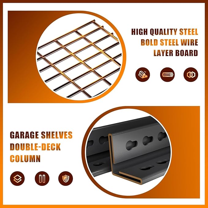 - [Adjustable and Separable Design for Maximum Flexibility] Our garage storage rack offers unparalleled flexibility. It is both adjustable and separable. Each layer can be effortlessly moved up and down in 1.4 - inch increments along the columns, allowing you to customize the spacing according to your items' sizes. Moreover, the entire metal storage shelving can be divided into two smaller shelves. This means you can use them in different spaces or even transform one into a convenient workbench.